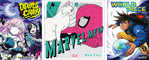 Viz Originals, an imprint launched by Viz in 2019 to publish original graphic novels by artists inspired by manga and anime, is off to a strong start with the manga adaptation of celebrated YA author Rainbow Rowell’s Fangirl, adapted by Sam Maggs and Gabi Nam, followed by two summer releases: World Piece, a sci-fi adventure series by Josh Tierney and Agroshka, and Devil’s Candy, a popular webcomic and supernatural high school comedy by REM and Bikkuri. Viz also recently announced a copublishing partnership with Marvel Comics to release English editions of Marvel stories created in Japan, starting in November with the release of Marvel Meow, featuring Captain Marvel’s “cat” Chewy, drawn by Nao Fuji.